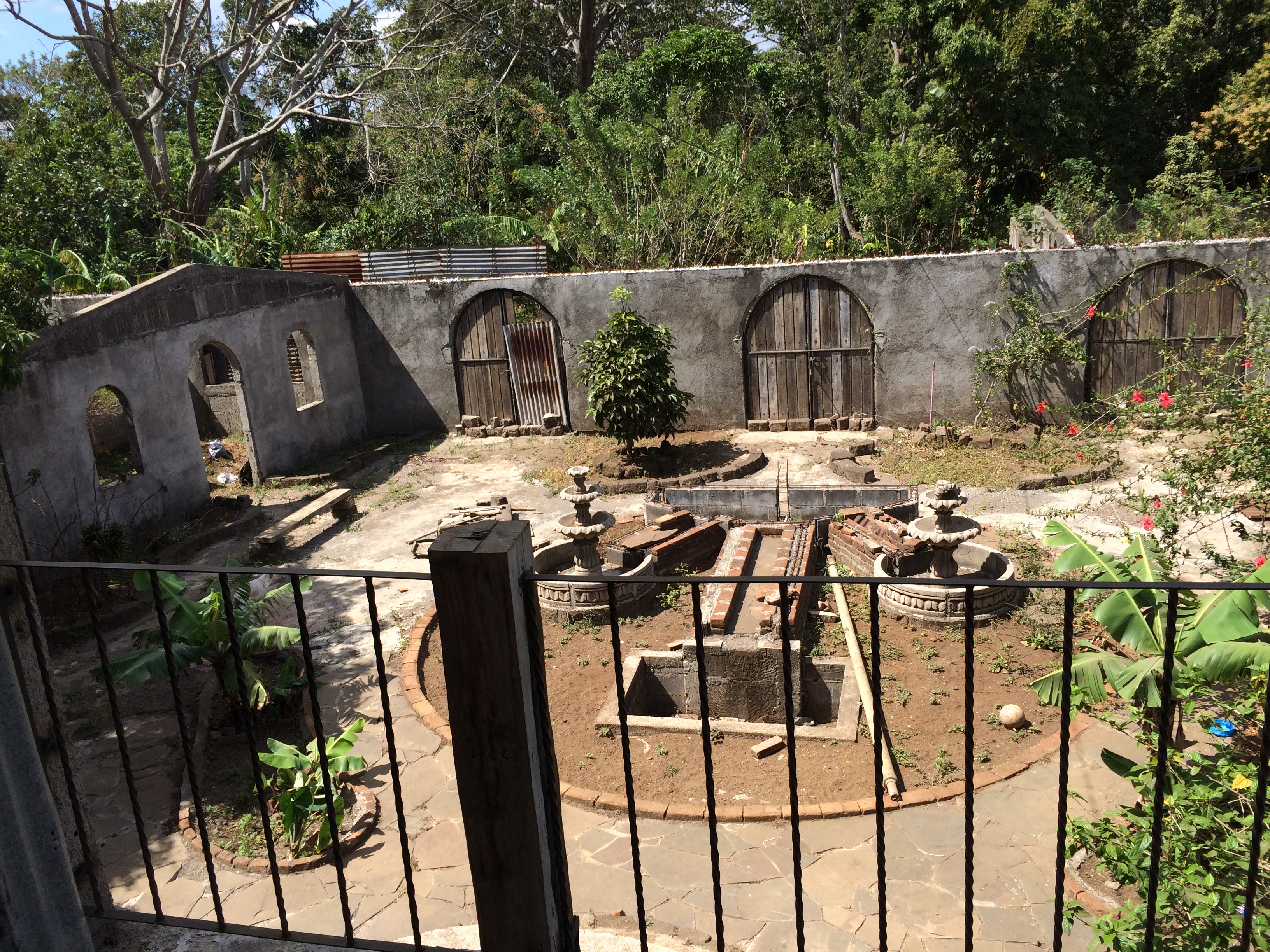 Paul has a huge vision for the whole property. In clockwise order below you will see his house, the wall surrounding the property, the backyard of the mission house almost ready for a fountain, the steps for a future 3d rosary walk, the future chapel, and the future catechism center.